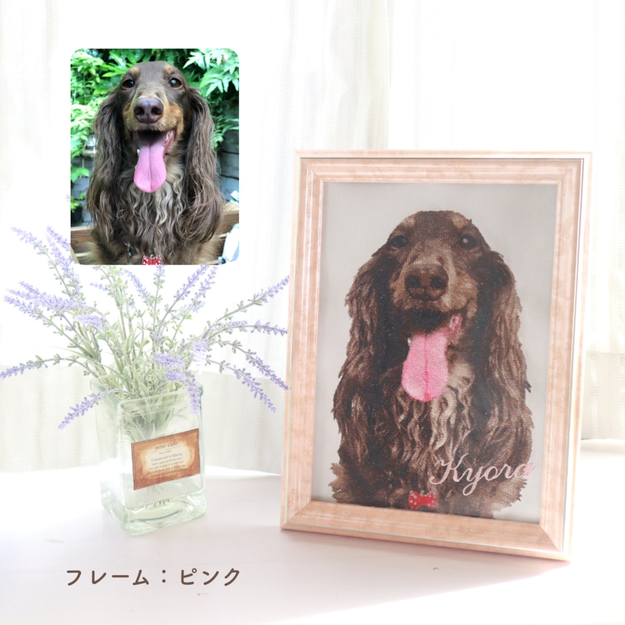A4額装・飾れるうちの子刺繍【フォト刺繍ファブリックパネル】