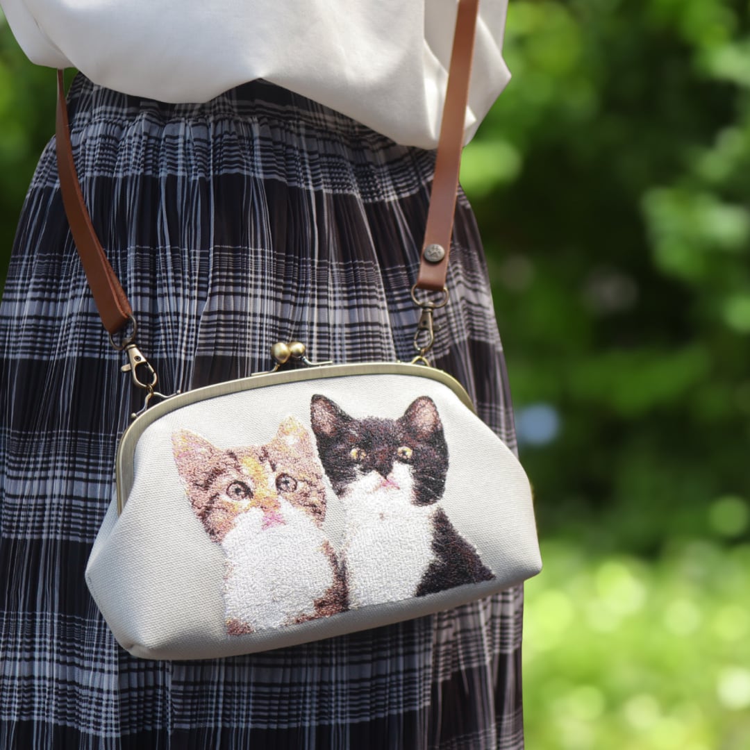 うちの子を刺繍したがま口【22cmがま口ポーチ】